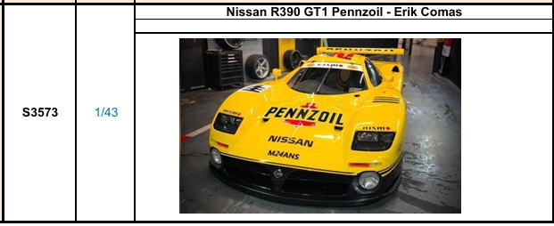 11/17 スパーク 日産 R390 ミニカー予約受付開始 ~11/24まで 2025.11.17 SPARK 1/43scale S3573/Nissan R390 GT1 Pennzoil - Erik Comas 予約者に限り定価¥12,000→10%OFF¥10,800(税込¥11,880) 2026年2月発売予定 11/24(月)まで予約受付中 ご予約は先着順とさせていただきます。 Next →