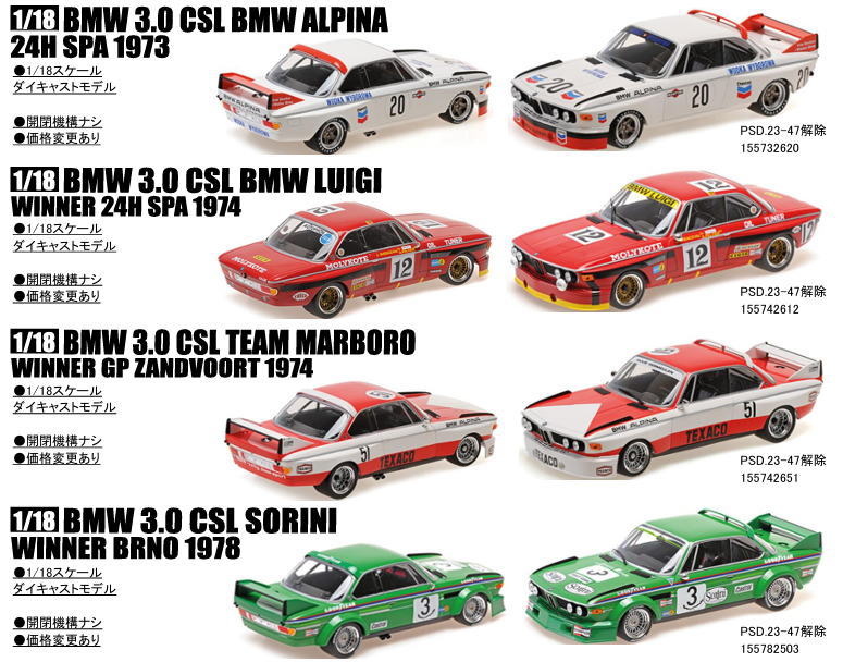 155742612/BMW 3.0 CSL "BMW LUIGI" PELTIER/XHENCEVAL/DIEUDONNEE #12 24H スパ 1974 ウィナー