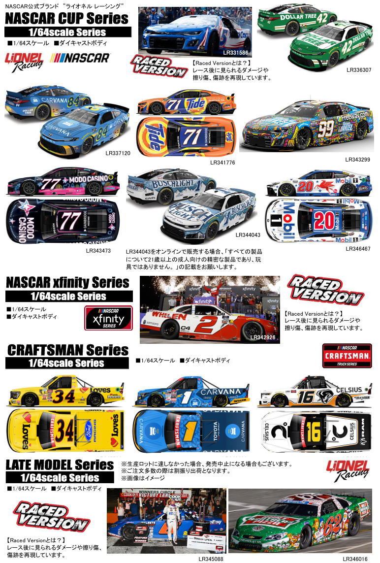 2/19 Lionel Racing Nascarミニカー予約受付開始 ~2/24まで