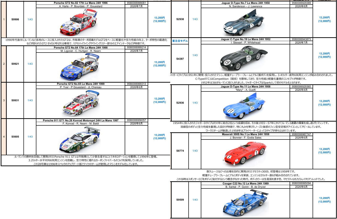 S8774/Maserati 300S No.1 Le Mans 24H 1958 J. Bonnier - F. Godia Sales