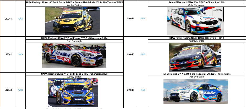 3/6 スパーク 1/43 BTCC ミニカー予約受付開始 ~3/23まで