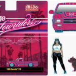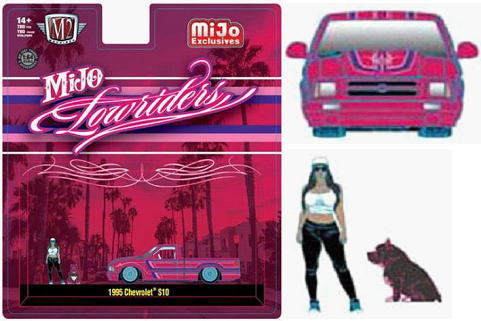 67500-MJS05/1995 シボレー S10 ローライダーカスタム ピンク with ガール & ピットブルドッグ フィギュア