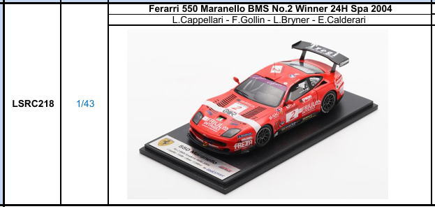 LSRC218/Ferarri 550 Maranello BMS No.2 Winner 24H Spa 2004